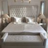 Diese qualitativ hochwertige Tagesdecke in der Farbe Beige haben wir passend zu den Gardinen aus einem hochwertigen Samt Stoff, welches speziell für Elisin Home hergestellt wurde, angefertigt.